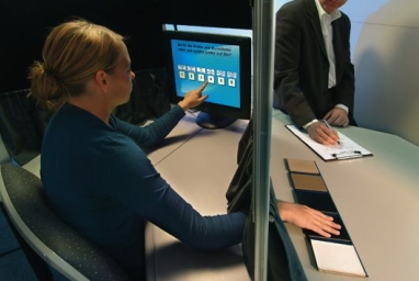 【奔馳公司的實(shí)驗(yàn)室中,測(cè)試者憑借觸覺(jué)判定的“真皮[ZhenPi]”卻是不折不扣的合成革】 |