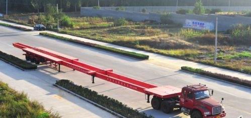| 國內最長風電葉片[YePian]運輸車[YunShuChe]河北曲陽下線。2010年10月16日,河北曲陽華運順通專用汽車制造有限公司開發的大型“風電葉片[YePian]運輸車[YunShuChe]”在曲陽下線。該風電葉片[YePian]運輸車[YunShuChe]重達20噸,具有縱向伸縮[ShenSuo]功能、車身三節伸縮[ShenSuo],最長伸縮[ShenSuo]可達45米。復位狀態后車身外廊長16米,并配備了液壓轉向裝置,具有運行平穩、轉彎靈活幾大特點。能適合運輸多種規格的風電葉片[YePian]業務。國內同一類型的車輛最長伸縮[ShenSuo]才42米。此車的下線成為中國風電葉片[YePian]運輸車[YunShuChe]行業中的典范。據中國環氧網/中國環氧樹脂行業在線(www.epoxy-e.cn)專家介紹,河北曲陽華運順通專用汽車制造有限公司創建于2007年,屬國家專用車定點生產[ShengChan]企業,是一家集研發、生產[ShengChan]、銷售為一體的專業化生產[ShengChan]企業,能生產[ShengChan]三橋低平板,兩張四橋、簸箕車、炮車、狼狽組合車,以及80噸至1000噸的液壓軸線平板車等30多個品牌的專業車輛,產品遠銷全國20多個省市、自治區。