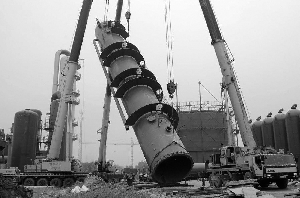 正在吊裝中的變脫塔。 |