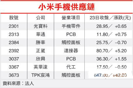 環氧樹脂網(www.ytfilter.com)最新報道[此消息來源于網絡]。 大陸首款自行研發的智能型手機—小米手機,要在10月跟蘋果新手機火并。傳代工廠英華達(3367)與觸控面板廠TPK宸鴻等臺廠已接獲訂單。另外像OPPO、步步高等其它大陸自有品牌手機,也陸續推出高階智能手機。隨著大陸手機市場往高階發展,將為臺灣供應鏈業績注入新活水。 目前大陸自有品牌高端手機多配備800萬畫素鏡頭,并對高質量觸控屏幕有強烈的需求,法人指出,大立光等光學鏡頭廠,以及觸控面板廠等,都是有機會的受惠族群;代工廠與手機零組件廠如閎暉等,也可大力爭取新訂單。 大陸自有品牌在今年陸續推出高階或精品級智能型手機,大陸手機市場生態,已從過去低階、山寨走向高端。過去臺廠切入的大陸手機區塊多為山寨、2G市場,聯發科當年就因山寨機登上巔峰;隨著大陸手機市場轉向高階規格,法人看好,臺灣受惠關鍵零組件廠將更多,包括鏡頭、觸控面板、PCB等,可望分一杯羹。 大立光近幾年來持續經營大陸手機市場,大陸地區的營收貢獻從過去的低個位數,到今年第二季增至近一成。法人表示,若大陸高端智能手機滲透率加速,將有助大立光接單表現。 大立光23日股價漲停收在774元,三大法人由賣轉買超109張。 此外,按鍵暨輕合金廠閎暉,也擠身OPPO 高端智能機供應鏈,QWERTY產品在6至7月出貨,是業績逐步走高的動能之一。閎暉23日上漲2.32%,收在66.2元。 大陸小米手機,硬件規格亮眼,搭載800萬畫素鏡頭、高通1.5G雙核心處理器、夏普4 寸面板,規格不輸一線品牌,其中部分關鍵零組件與代工,由臺廠負責,且售價僅人民幣1,999元,折合臺幣不到萬元。 業界認為,小米手機能否可打下漂亮的一仗,可視為臺廠切入大陸智能手機市場,是否有正向發展的指標之一。 目前切入小米手機供應鏈的包括TPK、勝華,PCB廠欣興、華通,手機零件則有正崴、光寶科,代工廠為英華達、富士康等。 小米手機的研發團隊出自美國軟件大廠如谷歌、微軟等,公司核心產品包括軟件、硬件、設計、平臺,并宣誓要當中國的蘋果。業界指出,小米手機的優勢是高規格、低價格,不過,可能還需要面對售后服務缺陷、專利費用過高等挑戰。