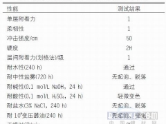 2.4配方的確定采用底漆2#配方樹脂采用江蘇三木化工集團(tuán)生產(chǎn)的604固體環(huán)氧樹脂.各項(xiàng)性能測試結(jié)果見表7.表7底漆在打磨鍍鋅馬口鐵板上的性能檢測結(jié)果.從表7中可以看出.但其他各項(xiàng)耐化...