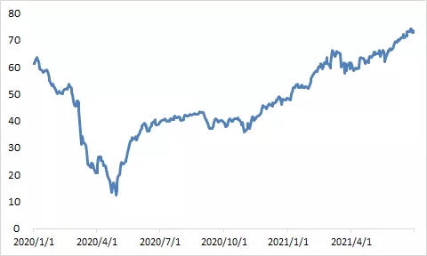 2021年上半年,國(guó)際原油價(jià)格大漲,從年初的47美元/桶拉漲至70美元/桶以上,半年漲幅超50%。且市場(chǎng)人士對(duì)于國(guó)際油價(jià)的后市更加樂(lè)觀,維多、嘉能可和托克等大型石油貿(mào)易公司的高管此前表示,油價(jià)還有上升空間,升至每桶100美元的可能性存在。